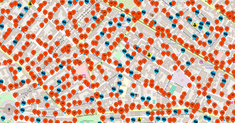 -Приказан је број правних лица и број области. Избором на stacked bar chart мењају се и ове две цифре.